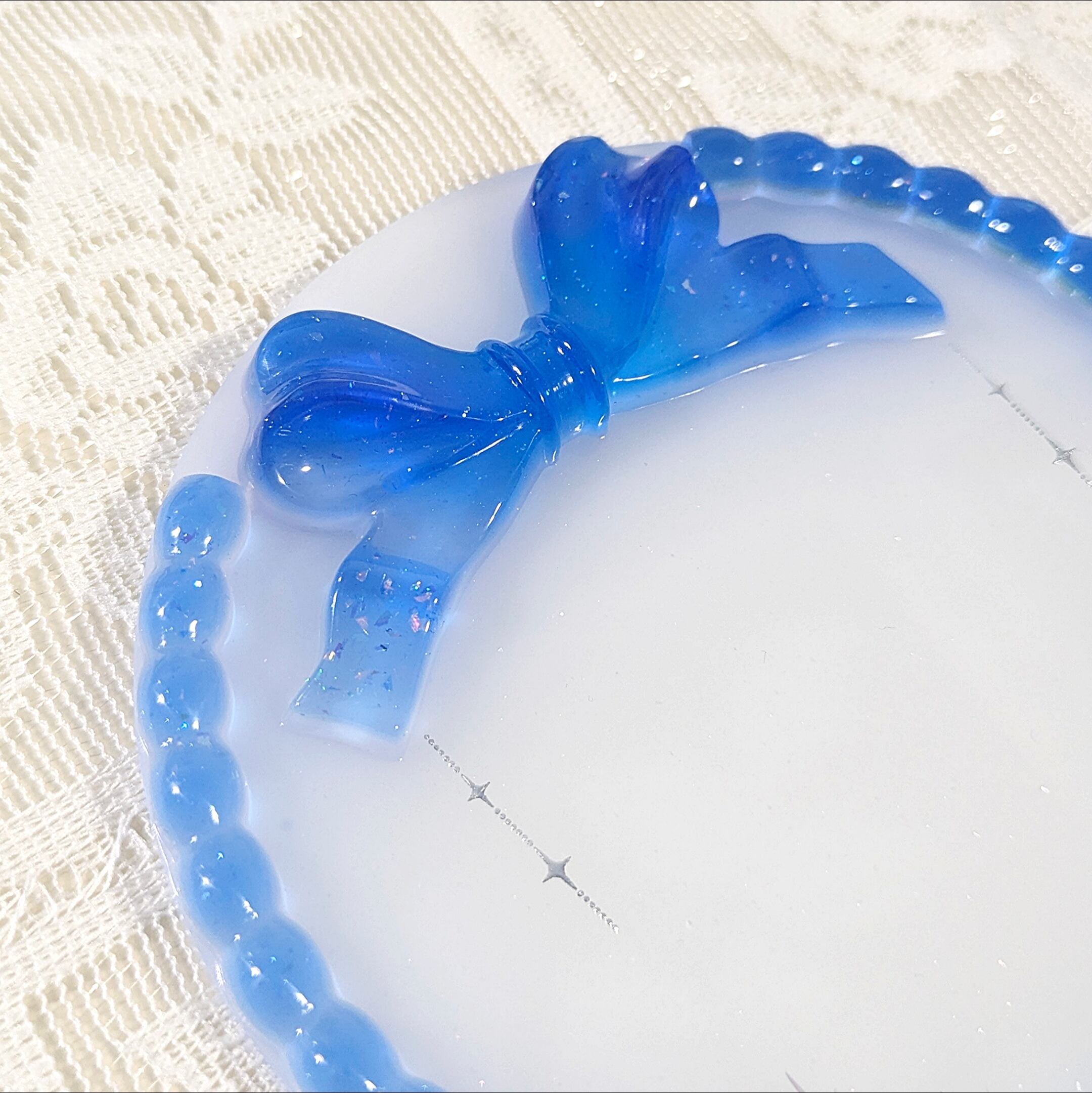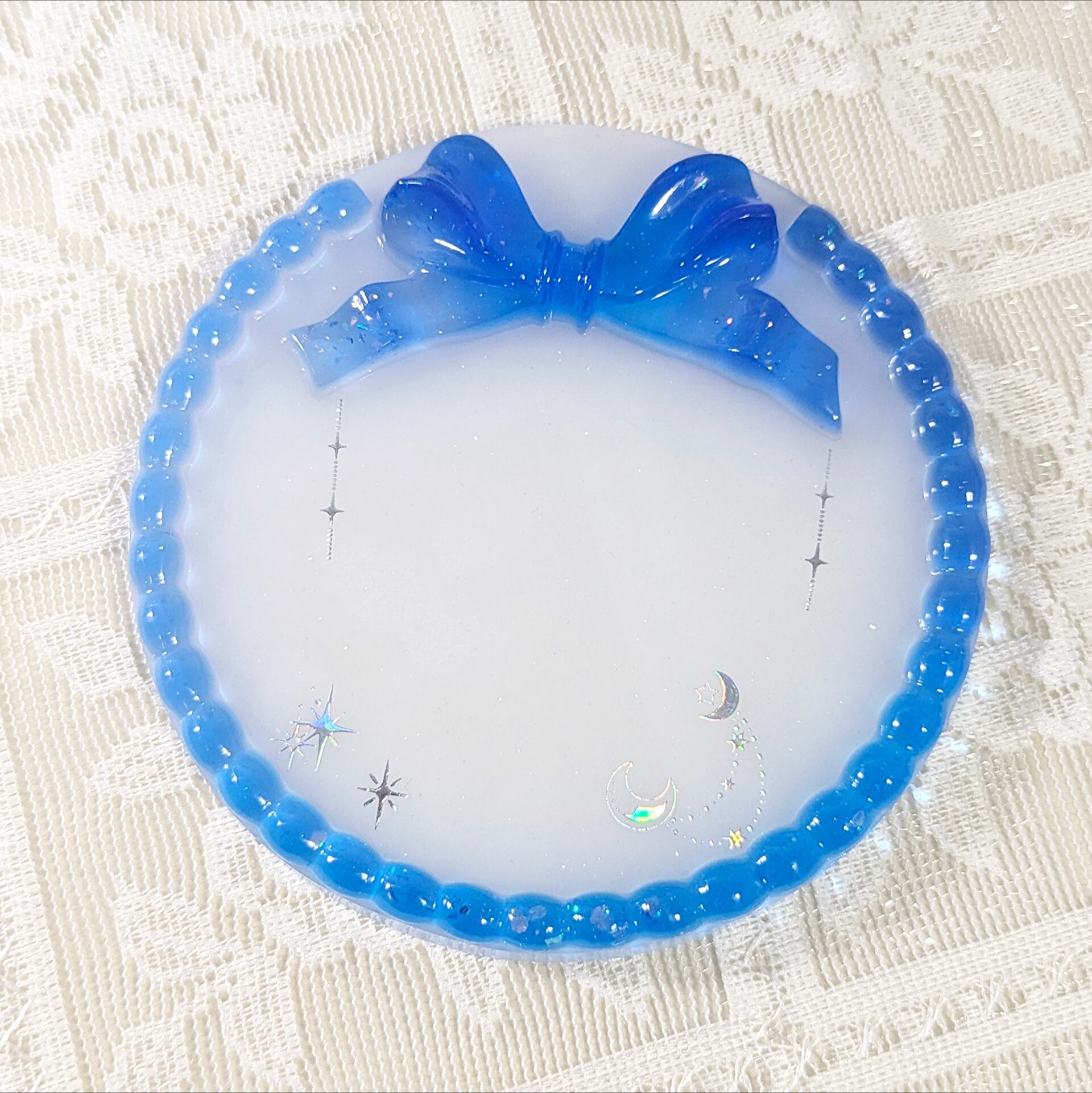 リボン ラウンドレジントレイ 青 夜空